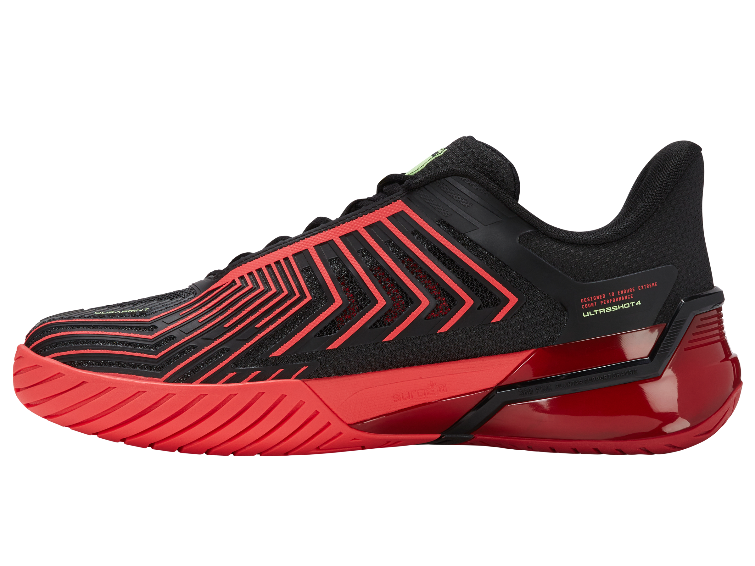 The Ultrashot 4 offers pro-level performance with Surge 7.0 energy return, a graphite winglet for stability, and a durable Aosta 7.0 outsole.
